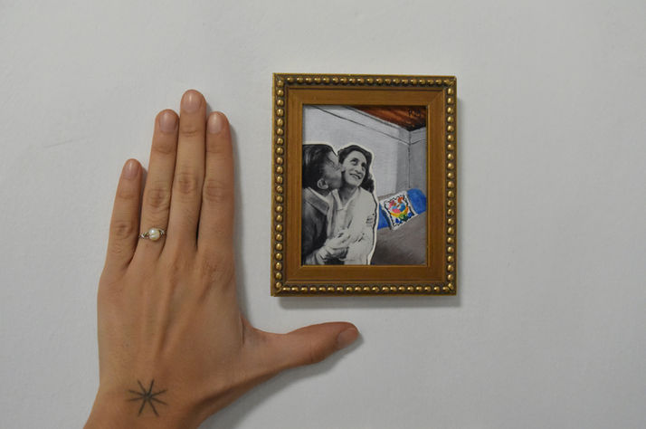 Medidas: Mónica y Víctor en el taller (30x30cm), Frida y Diego en la sala (13x18cm), Marina y Ulay en el comedor (18x13cm), Jeanne-Claude y Christo en la cocina (12x16cm), Anni y Josef en la habitación (11.5x10cm).