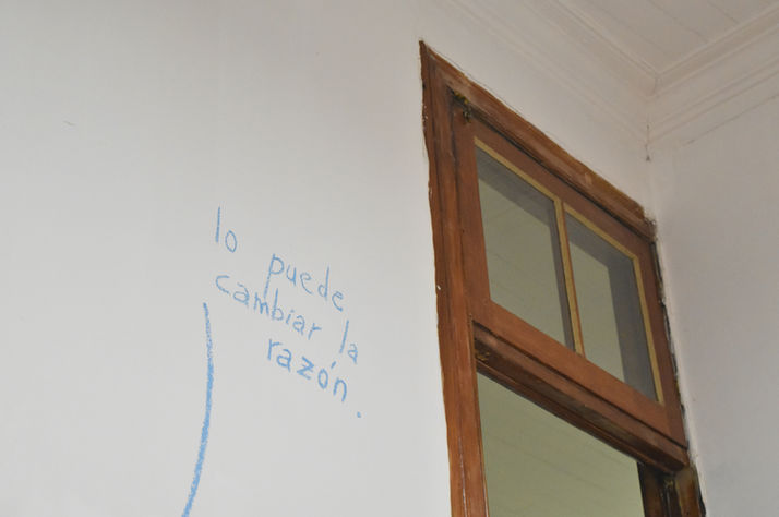 Un agujero en el muro, un dispositivo comunicante y una serie de preguntas. El teléfono de los amantes es una instalación que conecta las dos salas que componen esta exposición. Fue activado por primera vez el día de la inauguración, cuando P y G conversaron a través de él, compartiendo, a veces en la intimidad del secreto, y a veces con el público, el proceso del proyecto y la experiencia del cambio de roles. "Si quien está del otro lado del muro se pusiera en tu lugar, tu tiempo, tu cuerpo, tu horizonte... ¿qué tendría que sentir, aprender o hacer para habitarlos?, ¿y viceversa?" , ésta y otra serie de preguntas se escriben en tarjetas de ambos lados del teléfono, invitando al público a conversar e imaginarse llevando este ejercicio a su vida cotidiana.